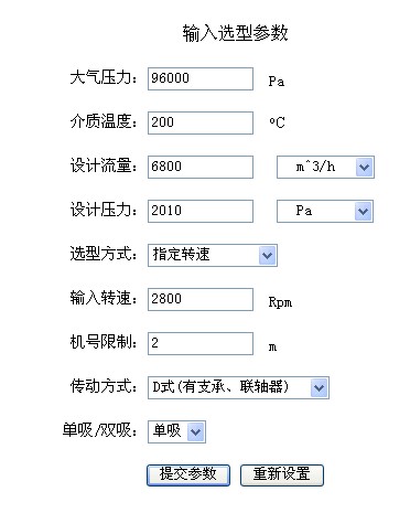 流量:6800m^3/h,进口温度:t1=200℃,全压:Ptr=2010Pa,进口绝对压力 P=96000Pa